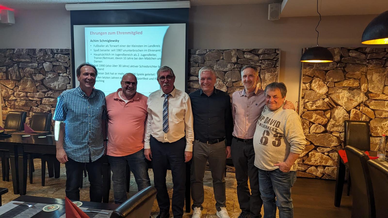 Ein absoluter Höhepunkt war die feierliche Ernennung der langjährigen verdienten Mitglieder Peter Herzig, Joachim Spitz, Bernd Eberle, Gernot Sprißler und Achim Schmiglewsky zu Ehrenmitgliedern unseres FCs.