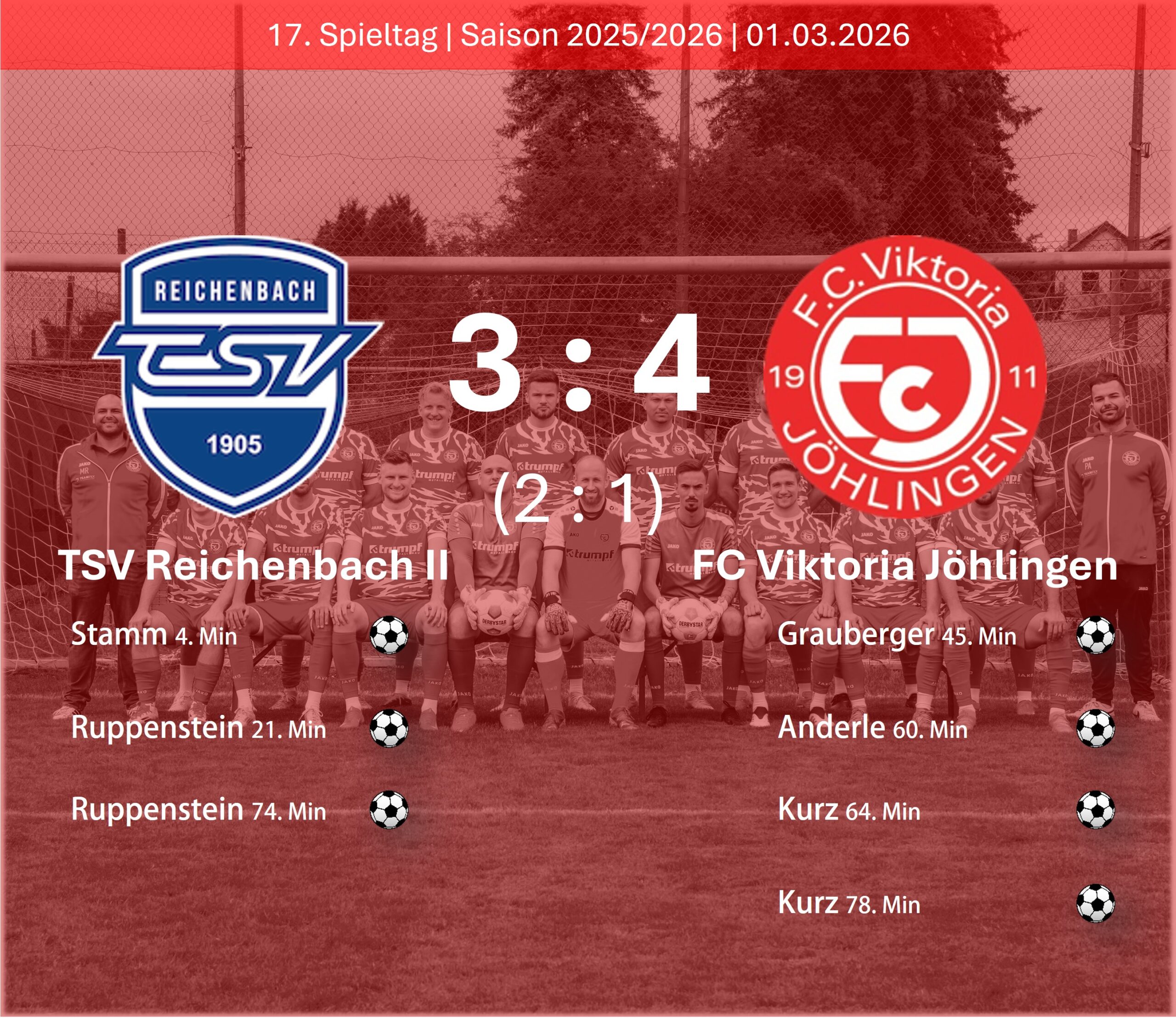 TSV Reichenbach II – FC Viktoria Jöhlingen 3:4 (2:1)